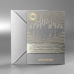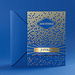 Тиснення металізованою фольгою у сюжеті з атомічними шестернями стане чудовим рішенням на різні свята для більшості підприємств та корпорацій пов'язаних з машинобудуванням та металургією. Вітальна корпоративна листівка з витіюваним міським профілем ідеально підійде для ріелторських та муніципальних організацій. Аристократичні патерни в стилі Арт-Деко - ідеальне універсальне корпоративне рішення з вітаннями для будь-яких підприємств, фірм та компаній.
