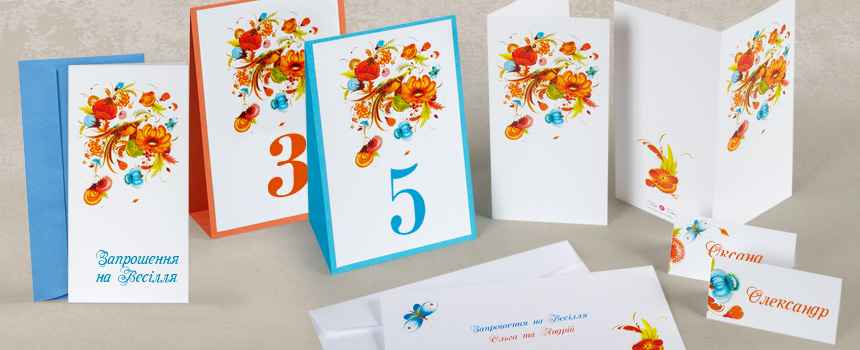 Перед Вами розділ, в якому представлені запрошення в українському національному стилі. Весільні запрошення виконані в дуже привабливій манері Петриковського роспису. Зверніть увагу, що національна тема розкрита дуже не банально.